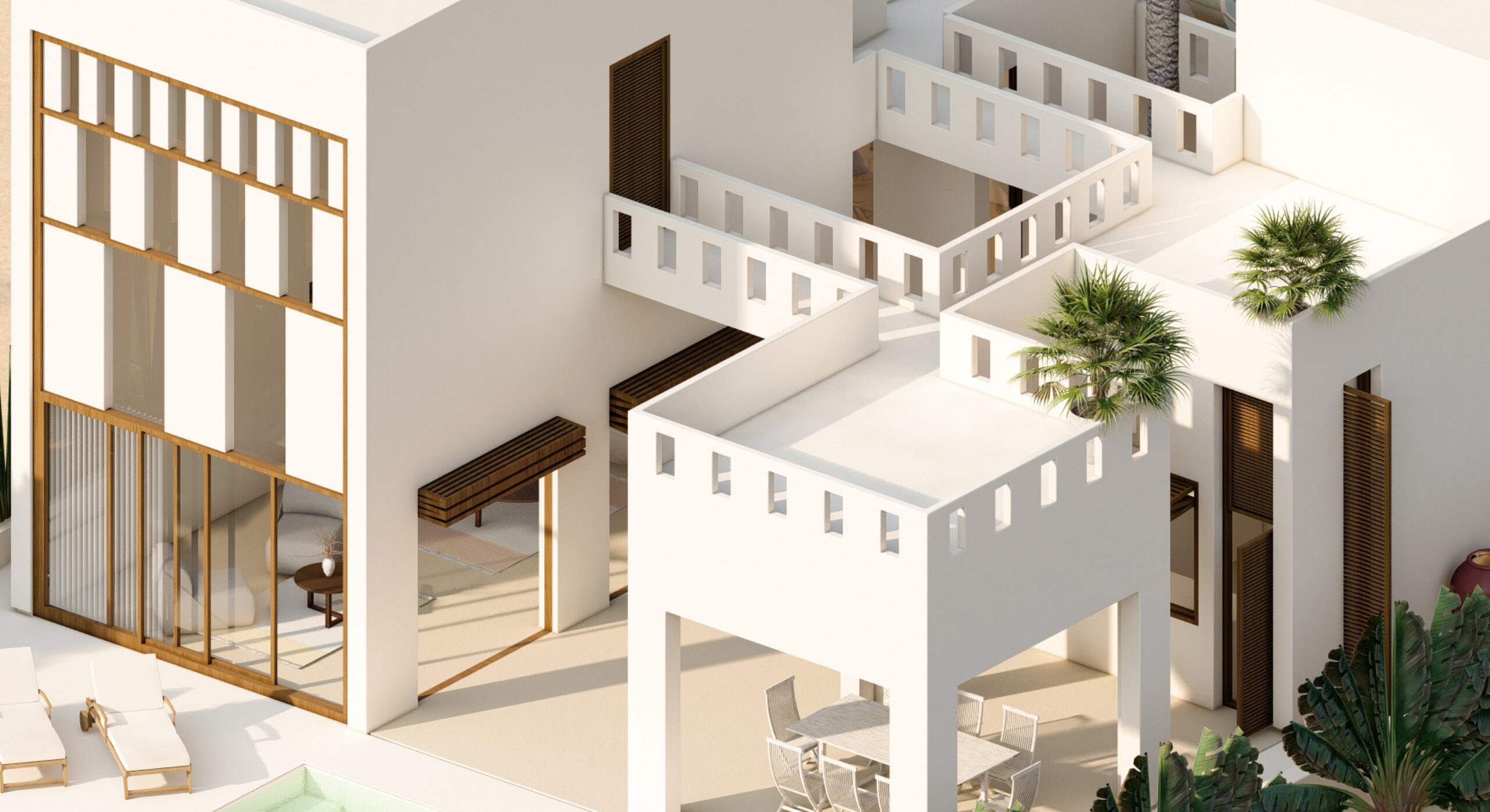 Villa H is a linear cut-through dwelling composed of two elongated volumes separated by narrow alleys and reconnected through two bridges — forming a unified typology. The architecture follows the logic of the traditional central courtyard, acting as a climatic interface that channels prevailing winds through its inner corridors to naturally ventilate the units. Another […]